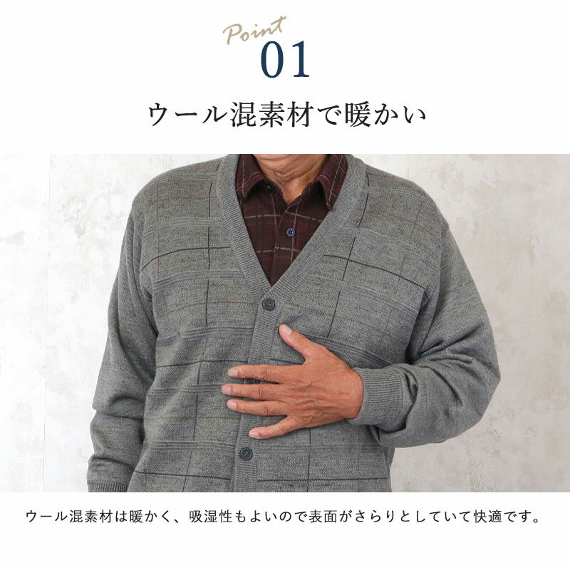 シニアファッション メンズ 80代 70代 60代 90代 秋冬 毛混チェック柄裏地付きカーディガン おじいちゃん 服 プレゼント 紳士服 男性 祖父 高齢者 お年寄り 老人 暖か あったか 防寒